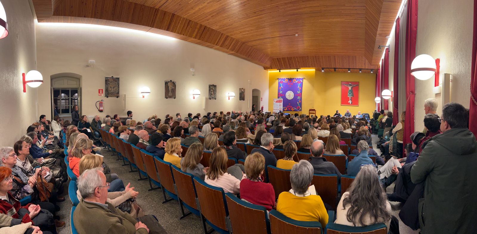 La escucha del otro desde la dimensión contemplativa fue el comienzo de la conferencia de Pablo d’ Ors sobre “La verdad que nos sana”, que tuvo lugar en un aula magna de la Facultad de Teología a rebosar. Paso a paso Pablo fue adentrando a todo el auditorio en la profundidad de su propuesta. En primer lugar, presentó un cambio de paradigma en la escucha al afirmar que escuchar es acompañar al prójimo al yo profundo de su persona; después propuso un trabajo para descubrir que el sufrimiento no está en la realidad, sino que es fruto de la visión de cada uno, y para ello hay que trabajar el cuerpo, las emociones, y los deseos; y por último abrió un horizonte para la escucha auténtica que tiene que generar aceptación, amor y paz.